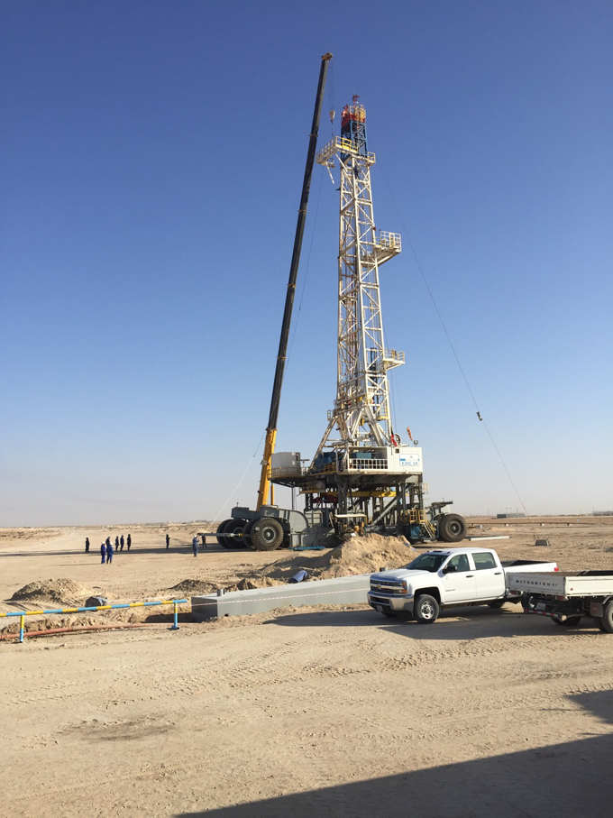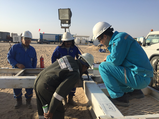 2017年11月10日,李俊接到公司任务派遣,前往科威特KUWAIT DRILLING COMPANY公司18队及50队分别进行折叠油缸操作台及防喷器支架的返修见证检测服务。 到达KDC-18队时,向客户提出现场需要的返修设备及焊工资质要求,客户协调好后便开始了返修见证,返修好后并提出2件油缸的使用需同步,操作需缓慢的建议,客户非常满意,并表示将很快传达给操作者。 在KDC-50队,经检测后发现防喷器支架焊缝裂纹较多,甚至焊缝边缘的母材也被拉裂,随即按设计工艺文件进行返修整改,经过二十天的返修整改也了解了用户在钻机平移时的情况,客户在平移时未使用过门型支架,造成防喷器支架受力较大焊缝多处出现裂纹,在现场与客户交流钻机平移时的要求与需要注意事项后,客户将钻机平移到下一个钻井场地,在整个平移过程中很平稳,未出现任何异响(客户谈到之前平移会有异响),为客户消除了后期使用将出现的隐患,确保钻机安全平移。