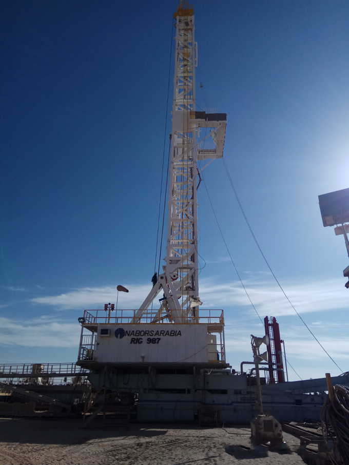 2017年12月,我公司应NABORS沙特钻井公司邀请,前往沙特对NABORS 987井队井架、底座进行CAT-IV类检测,此次检测是继2017年5月检测服务之后的又一次服务。我公司高度重视,安排了两名检测服务工程师前往现场。 我公司人员到达沙特现场后,积极与客户现场负责人进行沟通,按照客户现场的维修及检测计划,以敬业的态度以及专业的技术指导与NABORS 987 CAT IV 维修人员工作在一起,每天工作12小时,期间及时与现场维修人员及时沟通,保证井架及底座所有CAT IV 检测工作顺利完成,2018年1月14日,NABORS 987 井架及底座在CAT IV检测和维修后顺利起升。此次服务为期38天,最终得到NABORS 客户现场经理的认可,特发表扬信用以表扬此次进行服务的检测人员。