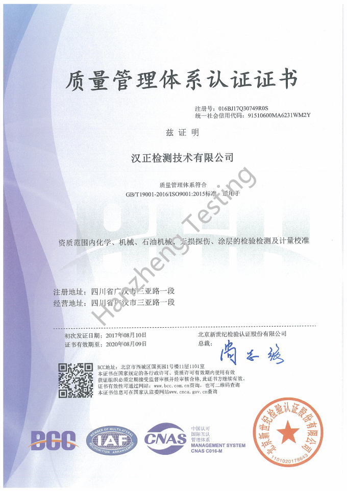 质量管理体系证书