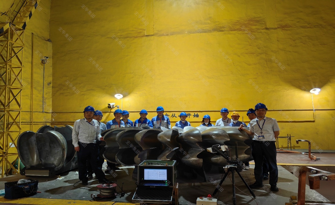 水轮机转轮的设计、制造是衡量水轮机制造水平的主要指标,金窝项目为冲击式机组,其转轮采用了新的制造工艺方案,产品关键区域残余应力情况是评估新工艺有效性的关键指标之一,但传统的盲孔测试法将对产品本体产生损坏,需要研究采用无损伤的残余应力测试新方法对制造新工艺有效性进行评价。面对新技术挑战,汉正检测立即成立了以黄军总工程师为组长的检测团队,与东方电机项目团队质检部卿松副部长、何致勇主任,工艺室金宝工程师等对检测技术、检测工艺、检测部位等进行多轮现场研究讨论,首次形成了《金窝转轮超声、射线残余应力测试方案》。面对检测新技术、新工艺的首次应用,项目团队充分发挥严谨拼搏、精益求精的工作作风,经常在现场工作到凌晨,提前完成相关测试工作,保证了产品按期进入下工序。