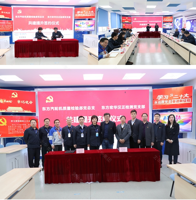 方汽轮机质量检验部党总支与汉正检测党支部围绕双协同、双融合签订党建共建提升责任书。