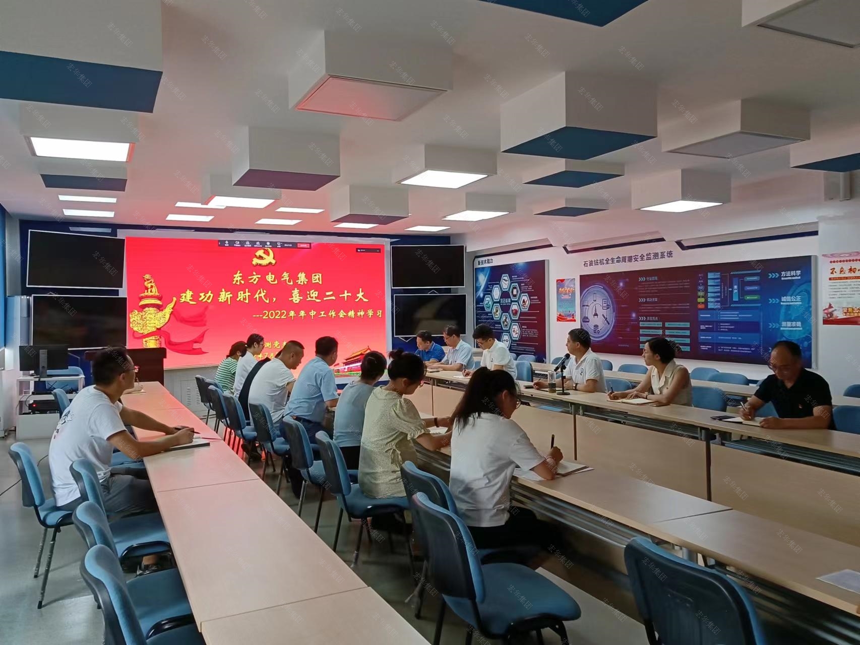 7月29日,四川宏华汉正检测党支部在汉正检测一楼科技厅组织宣贯了东方电气集团2022年年中工作会议精神,党支部书记杨世平主持会议。