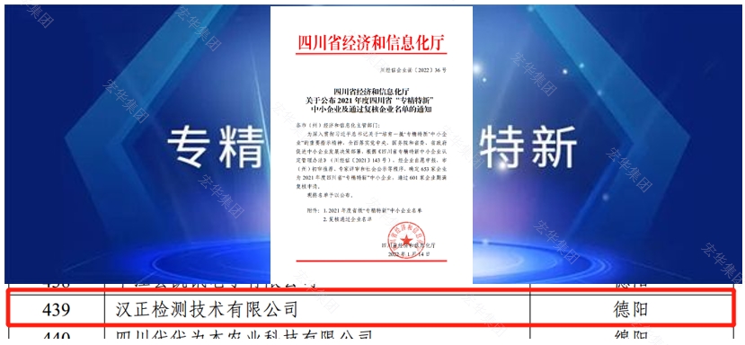 近日,汉正检测被四川省经济和信息化厅成功认定为四川省“专精特新”中小企业。