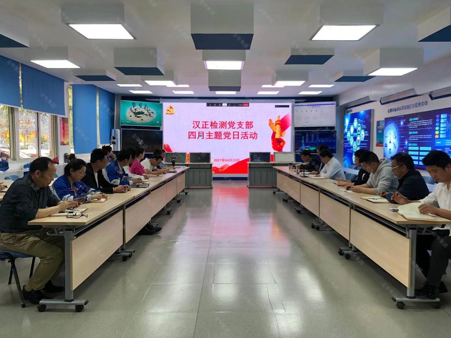 2021年4月23日下午,汉正检测党支部书记、董事长兼总经理杨世平组织汉正检测党支部和团支部在一楼科技厅开展四月主题党日活动。全体党员、共青团员以现场或远程视频的方式参会。