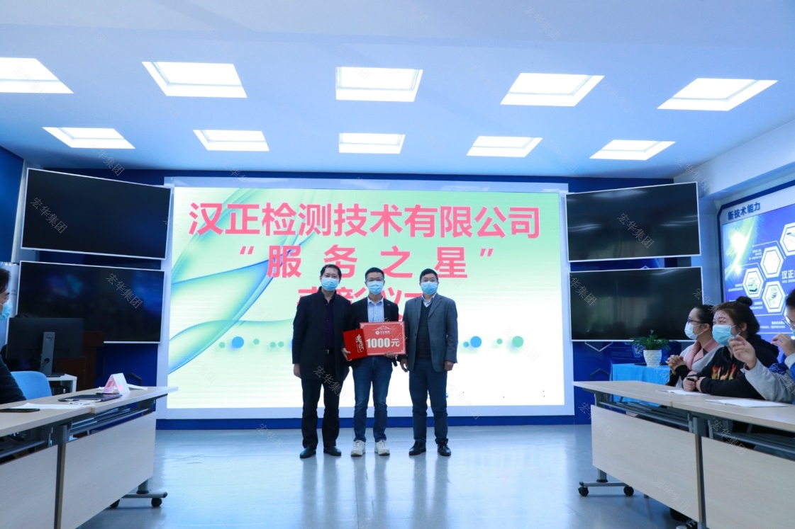 4月10日,汉正检测在一楼科技厅举行授予赵洪贤“服务之星”颁奖仪式。汉正检测董事长、总经理杨世平,副总经理高彦华,总工程师黄军,各部门负责人及在公司全体员工参加了此次颁奖仪式。